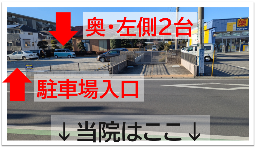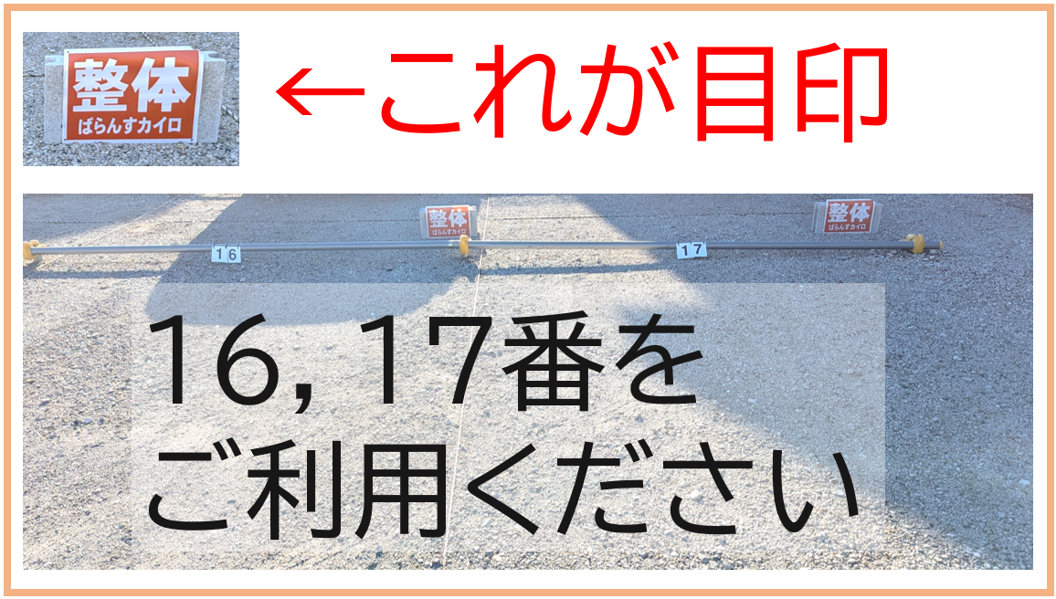 「整体」と表示されている2台分が当院の駐車スペースです。
